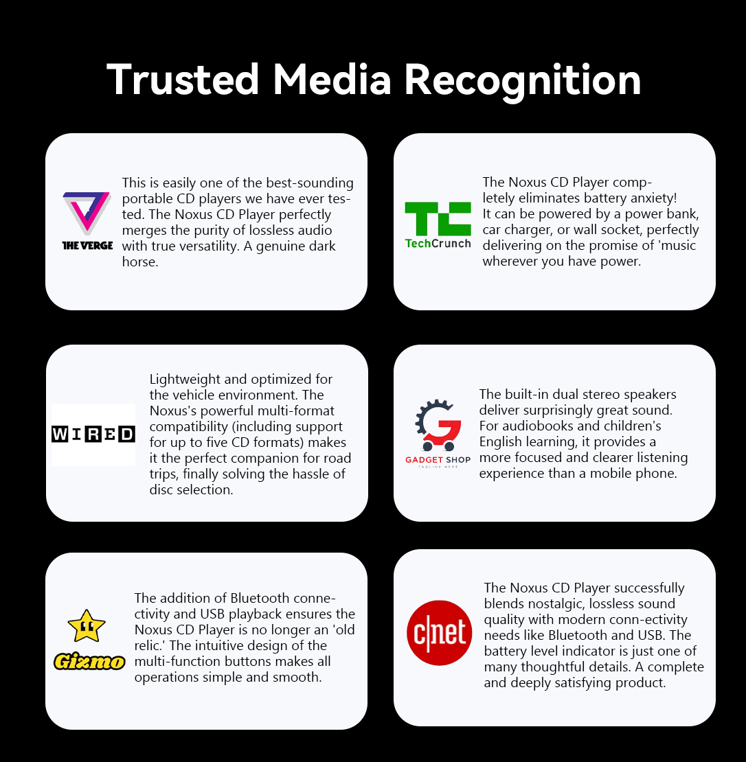The Noxus CD player supports Bluetooth wireless connection, allowing you to easily pair your phone, tablet, or other Bluetooth devices for seamless music playback. Whether at home, in the office, or in the car, enjoy high-quality sound anytime, anywhere, without the hassle of cables.